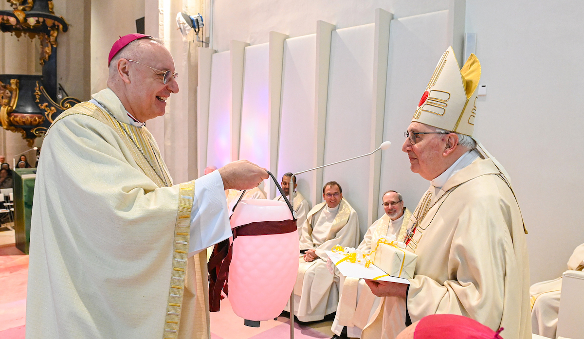 Abschließend gratulierte Bischof Dr. Zsifkovics seinem Vorgänger zum “Triduum episcopale” - Geburtstag, Bischofsweihe und Namenstag. Er erwähnte, dass 1993 bei seiner Bischofsweihe ein Krieg in Europa im ehemaligen Jugoslawien tobte. Deshalb hatte Bischof Iby den Erzbischof von Sarajevo Vinko Kardinal Puljićbewusst als Mitkonsekrator erwählt und dieser ist trotz der Kriegswirren zu seiner Bischofsweihe gekommen. Heute tobt wieder ein Krieg in Europa, in der Ukraine - bitten und beten wir inständig zu Gott, dass er diesem leidgeprüften Volk und Land Frieden, Freiheit und Versöhnung schenke!