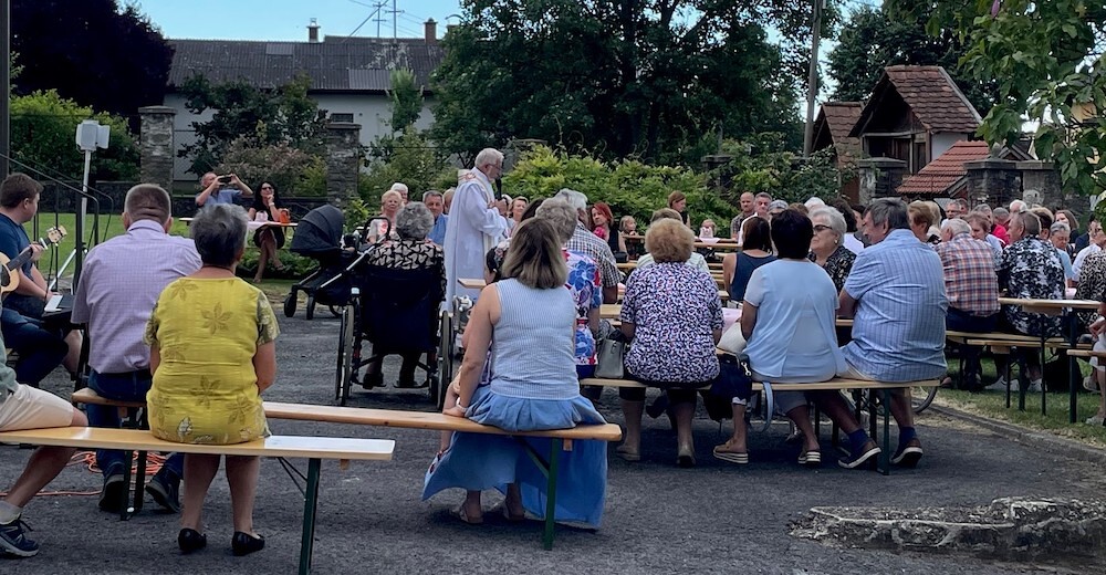 Am Freitag, den 28. Juli, veranstalteten wir unseren traditionellen Vorkirtag im Pfarrhof. Zahlreiche Gläubige kamen, um die hl. Messe zu feiern und sich dann bei gutem Essen und Trinken, welches die Pfarrgemeinderatsmitglieder und ihre HelferInnen hervorragend organisiert und vorbereitet hatten, zu unterhalten.