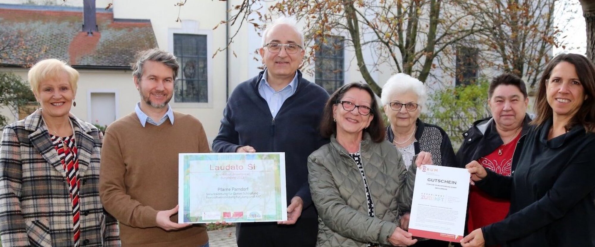 Das Projektteam der Pastoralen Dienste gratulierte der Pfarre Parndorf zu ihrem Engagement und wünschte Ihr, dass sie mit dem Preisgeld "weitere Schritte in Richtung Schöpfungsverantwortung“ gehen können.