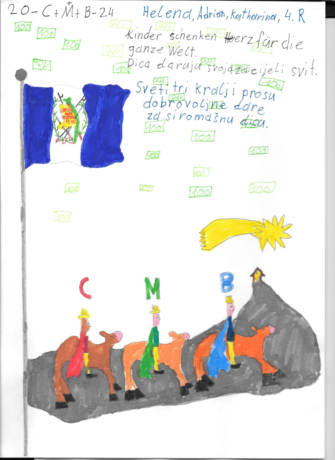 Im Religionsunterricht etwa gestalteten Schüler informative Plakate oder Zeichnungen und setzten sich mit der Situation in Guatemala auseinander. Interessant war auch die Arbeit mit dem neuen zweisprachigen Religionslehrbuch für die erste Klasse „Glauben entdecken und darüber nachdenken“, in dem dieses Thema ausführlich behandelt wird. Die Kinder, gekleidet als Heilige Drei Könige, werden mit der Aufschrift „Wir tun Gutes“ dargestellt. Darunter haben die Schüler eine Anleitung mit dem Hinweis: „Menschen, die sich wie Jesus verhalten …“.