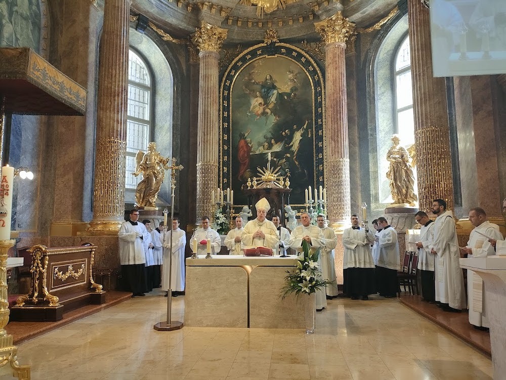 Wir sind in diese wunderschön restaurierte Kathedrale der Mutter von Györ, zu dieser alten Quelle unseres Glaubens gekommen, um unsere müden, trüben, blinden und traurigen Augen vor dem barmherzigen Bildnis der „tränenreichen Jungfrau Maria“ zu waschen und sie um ihre Fürsprache bei ihrem Sohn Jesus zu bitten, damit in unseren Familien, Kirche und Gesellschaft LIEBE, FREUDE, FREUNDSCHAFT und GEMEINSCHAFT zurückkehre und vor allem das der FRIEDE zurückkehre in die Ukraine und das Heilige Land!