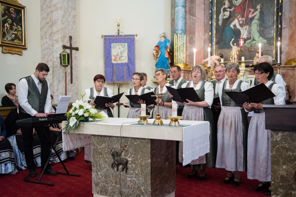 Am 18. Mai 2025 fand das Treffen der katholischen Chöre des Pinkatales in Großdorf statt. Von Nahring (Narda) bis Postrum (Petrovo Selo) kamen Kroaten und Deutsche zusammen. Jedes Jahr im Mai treffen sich die Chöre der jeweiligen Gemeinden, um die Heilige Jungfrau Maria zu begrüßen und Gott zur Ehre zu singen. Jedes Jahr gestaltet eine andere Gemeinde diesen Nachmittag. Dieses Mal waren die Deutschen aus Großdorf an der Reihe. Die Gemeinde Keresteš (Vaskeresztes (H) / Großdorf (D)), die lokale und die deutsche Selbstverwaltung organisierten gemeinsam diese traditionelle Veranstaltung in der Kirche von Großdorf.