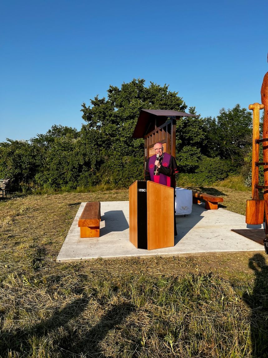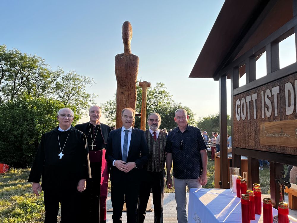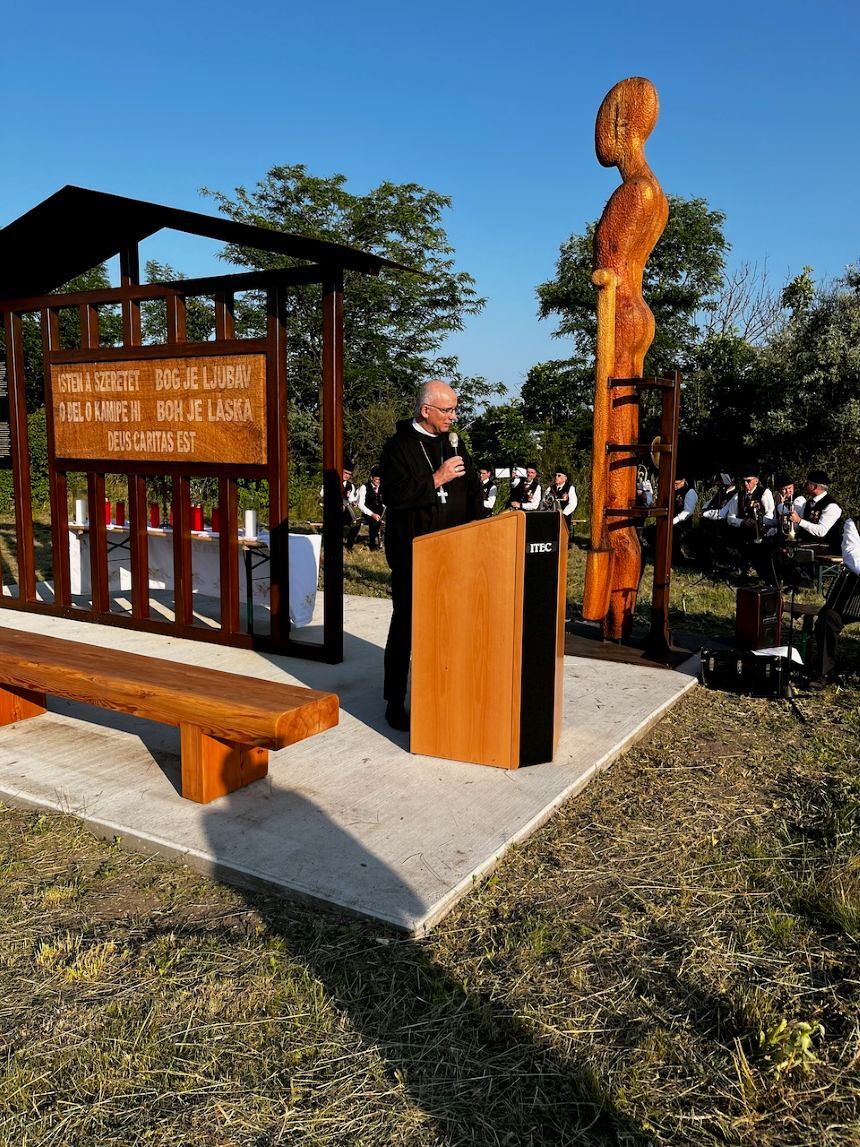 „Das Denkmal erinnert an die Opfer von Gewalt, Krieg, Diktatur und Terror – gestern wie heute – besonders an die Opfer der Tat am Pfingstdienstag in Graz. Wir dürfen keine Anwälte des Todes sein, sondern müssen Propheten des Lebens werden“, betonte Bischof Ägidius Zsifkovics. „Die Gedenkstätte erinnert auch an die Zwangsarbeiter, die beim Bau des nie vollendeten Südostwalls leiden und sterben mussten – unter ihnen war auch der junge Joseph Ratzinger, der spätere Papst Benedikt XVI. Dank galt dem Land Burgenland, der Erzabtei Pannonhalma, der Gemeinde Deutsch Jahrndorf und dem Künstler Daniel Bucur. Die Stätte soll ein Ort der Erinnerung, der Stille und der Hoffnung sein – getragen von der Botschaft: Gott ist die Liebe“, so der Bischof weiter.
