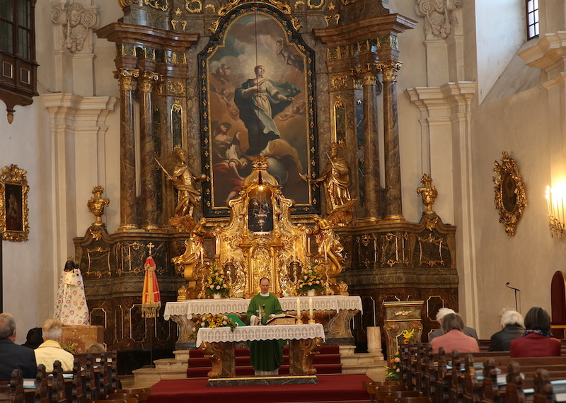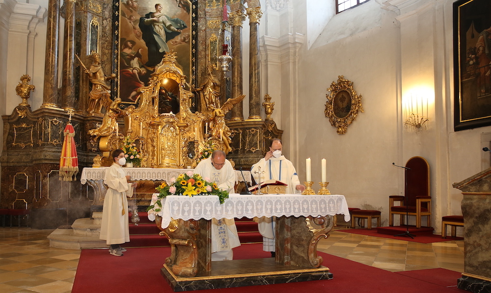 In der Predigt zeigte MMag. Jahns auf die Muttergottes, deren Leben uns lehrt, was es bedeutet heilig zu sein. Maria stand unter dem Kreuz Jesu, jene aber, die die Wunder Jesu gesehen hatten, seine Jünger, haben ihn verlassen. Es ist nämlich Zeichen wahrer Liebe, dass sie stärker ist als die Angst und sich in der Not erweist. MMag. Jahns rief die Gläubigen auf, immer mit Jesus in enger Verbindung zu bleiben, nicht nur in schweren Zeiten. Er sprach auch über die Herausforderung, sein Kreuz auf sich zu nehmen, und verwies auf den Sinn des Leidens für andere und für die Welt … Aber in der Not und unter dem Kreuz sind wir nicht allein. Jesus gab und Maria am Kreuz zur Mutter. „Wir haben eine Mutter im Himmel, die uns liebt und tröstet und bei ihrem Sohn Fürsprache für uns einlegt. Seien wir dankbar, dass wir sie haben. Empfehlen wir ihr alle unsere Sorgen, besonders die Kranken und Betrübten an“, betonte MMag. Jahns und lud ein, geduldig sein Kreuz zu tragen.