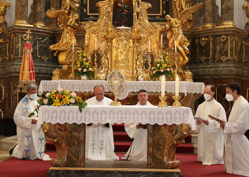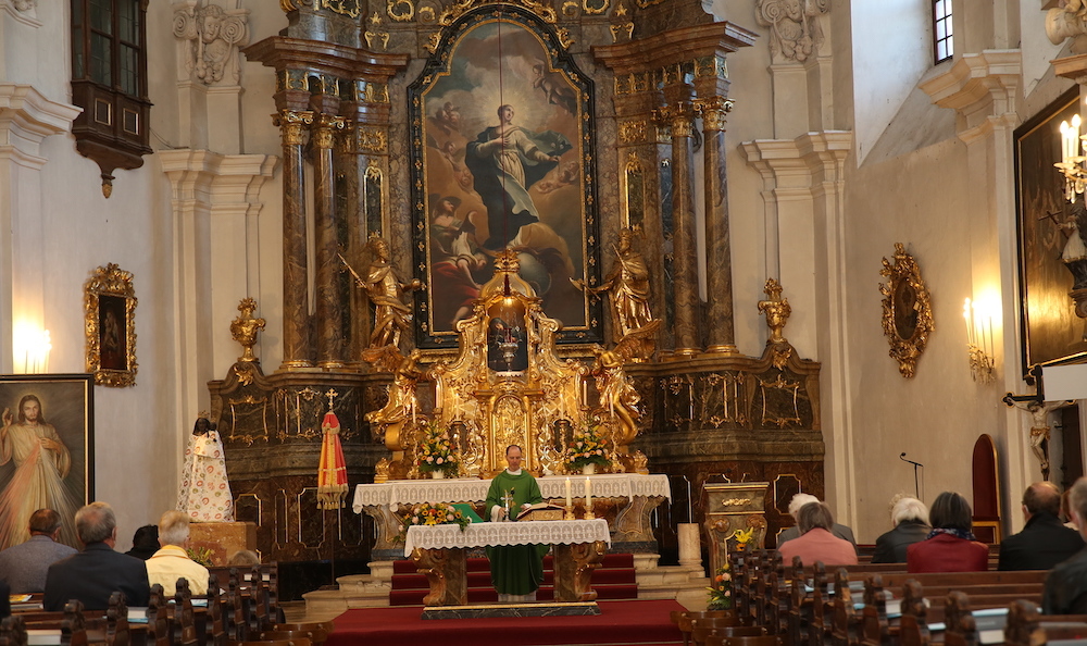 Der letzte Gruß an die Muttergottes war das Wallfahrtslied beim Abschied vom Wallfahrtsort. Dabei gingen nach altem Brauch die Gläubigen um den Altar und empfingen vom Rektor der Basilika P. Stefan Vukits OMV den Segen mit der Kreuzreliquie.