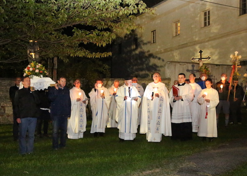 Ein bewegendes Erlebnis war die Lichterprozession nach der Messe um den Hauptplatz unter Leitung von Bischofsvikar Kan. Mag. Odobašića und Kan. Msgr. Thomas Krojer, der die Lieder und Gesänge leitete. Mit dem “Engel des Herrn” und dem Marienlied “Zdrava Diva” endete die nächtliche Feier. Der Einladung zum Nachgebet folgte eine kleine Gruppe von Gläubigen bis Mitternacht.