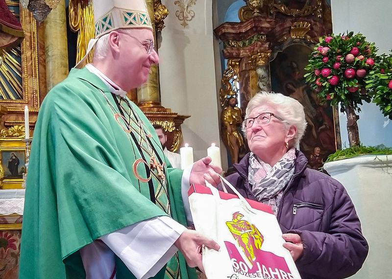 In der Basilika feierten der Bischof der Diözese Gurk-Klagenfurt, Dr. Josef Marketz, und der Eisenstädter Diözesanbischof, Dr. Ägidius Zsifkovics, gemeinsam die heilige Messe. Es konzelebrierte auch der Ortspfarrer, der sein 25-jähriges Dienstjubiläum in dieser Gemeinde feierte. Die Mitglieder des Pfarrgemeinderates gratulierten ihm und überreichten ein Geschenk.