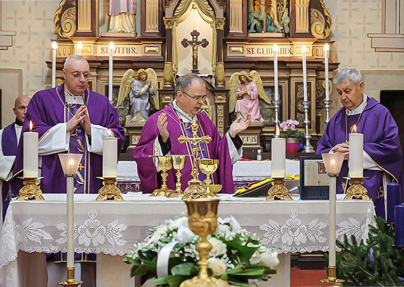 Zu Beginn der Heiligen Messe drückte der Bischof von Varaždin, Bože Radoš, sein Beileid den Verwandten, Neffen, Freunden und allen, die um den Verstorbenen trauern, aus. Er danket auch den Bischof von Eisenstadt, Dr. Ägidius Zsifkovics, für seine Anwesenheit und auch allen, die aus der Diözese Eisenstadt gekommen waren.
