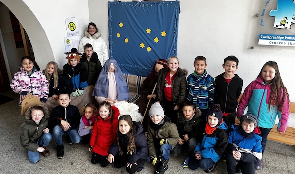 Die Volksschule von Weiden b. R. gestaltete eine „Advent-Station“ vor dem Schuleingang. In der Krippe, welche die Kinder gemeinsam mit den LehrerInnen aufgestellt hatten, gab es Gebete und Lieder in zwei Sprachen, Anregungen zur Feier für jeden Adventssonntag, Heiligabend und Weihnachten.