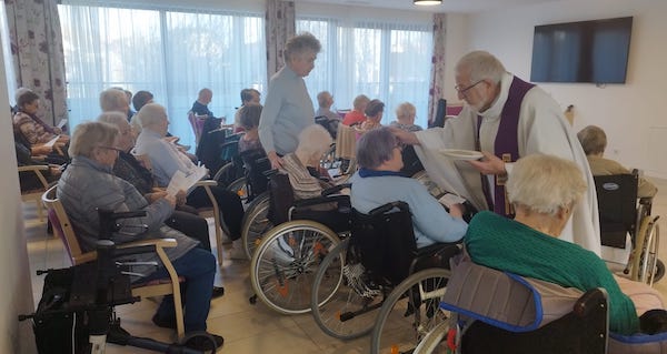 Im Pflegekompetenzzentrum in Schandorf feierte Pfarrer Branko Kornfeind am Aschermittwoch die hl. Messe. Nach der Messfeier hatte jeder die Möglichkeit, das Aschenkreuz auf der Stirn zu empfangen. Es waren viele Gläubige, nicht nur aus dem Zentrum, sondern auch aus der Umgebung anwesend. Mit dem Aschermittwoch begann auch in dieser Einrichtung die Fastenzeit. Wir danken Pfarrer Kornfeind, dass er sich jedes Mal die Zeit nimmt und gerne in das Haus und unter die Menschen kommt, die nicht in die Kirche gehen können, um die Feiertage zur Freude der Gläubigen zu feiern, die hier ein neues Zuhause gefunden haben.