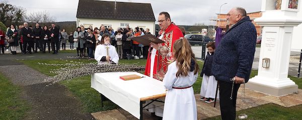 In Neuberg wurden an diesem Tag die Palmkätzchen erstmals vor dem neu geschaffenen Marienmarterl geweiht, musikalisch umrahmt vom Gesangsverein. Mit den gesegneten Palmzweigen zog die Gottesdienstgemeinde über den Hauptplatz in die Kirche ein, wo dann der Palmsonntagsgottesdienst gefeiert wurde. Dieser unterscheidet sich ein wenig von der üblichen Sonntagsmesse. Hier wurde der Schwenk dargestellt vom umjubelten Jesus bis zur Kreuzigung mit der Darbietung der Leidensgeschichte.