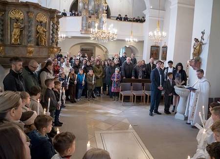 Am Sonntag, 17. März 2024, empfing Tyrese Igene Tobias Hamm das Sakrament der hl. Taufe. Er bereitet sich gemeinsam mit seinen Schulfreunden auf die Erstkommunion vor. So kamen alle Kinder damit sie gemeinsam ihr Taufgelübte erneuerten und so gemeinsam mit Tyrese Tobias ihren Glauben bekannten. Sie lasen auch die Fürbitten. Lehrer Lukas Kornfeind umrahmte die Tauffeier musikalisch. Wir wünschen Tyrese Tobias Gottes Segen und Nähe und gemeinsam mit seinen Schulfreunden eine gute Vorbereitung auf die Erstkommunion.