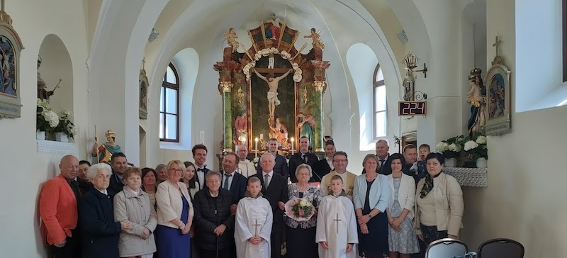 Es war sicherlich nicht einfach diese 60 Jahre gemeinsam durchzustehen und zu durchleben, aber es gab immer Verständnis, Liebe und Geduld. Heutzutage ist es eine sehr große Sache, dass Menschen 60 Jahren zusammen sind und wissen, dass sie sich aufeinander freuen können. Um dem lieben Gott zu danken, dass sie diese schöne Zeit gemeinsam erleben durften, wurde eine hl. Messe gefeiert, die der örtliche Pfarrer Tamás Köbli in Konzelebration mit Pfarrer Josef Kuzmits hielt. Pfarrer Köbli war sehr ergriffen, an diesem schönen Tag dabei sein zu können und erwähnte, dass es die dritte Diamantene Hochzeit sei, die er in seinem Priesteramt erleben durfte. Er erwähnte einige persönliche Erlebnisse und besonders jene Tugenden, die heute sehr selten sind. Er drückte seine Dankbarkeit dafür aus, dass noch Menschen gibt, die so leben und diese Tugenden bewahren und praktizieren, von denen es heute nur noch sehr wenige gibt. Wie er sagte, entstand aus den Samen das, was hinter ihnen steht, und das ist eine große und geliebte Familie, die auch hinter ihnen saß. Tereza und Petar haben zwei Töchter, Djurdjica, die mit ihrem Mann Ivan Kuzmits und den beiden Kindern Benjamin und Dorothea in Kroatisch Minihof lebt. Die zweite Tochter Anita, lebt mit ihrem Ehemann Tamáš Schlaffer in Hrvatski Šica. Sie haben drei Söhne großgezogen, David, Martin und Zoran, und haben bereits einen Enkel, Vinci. Bei der Messe nahmen die Töchter und Enkel aktiv teil und lasen die Lesungen Enkel Benjamin sang den Psalm: Meine Seele preist den Herrn. Sie waren alle an dieser hl. Messe beteiligt und trugen dazu bei, diesen besonderen Tag für die Eltern, bzw. Großeltern, die sehr glücklich waren, zu verschönern.