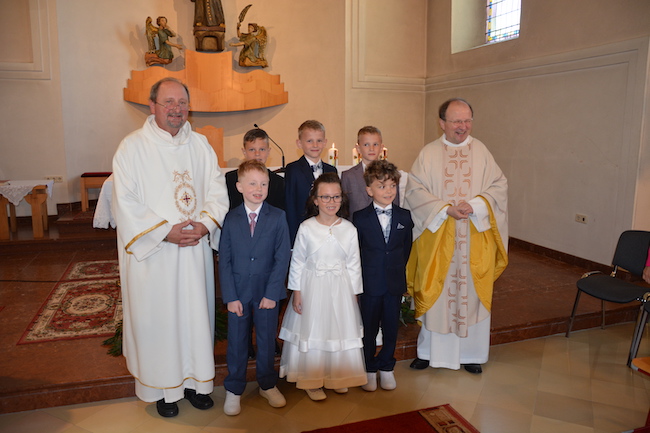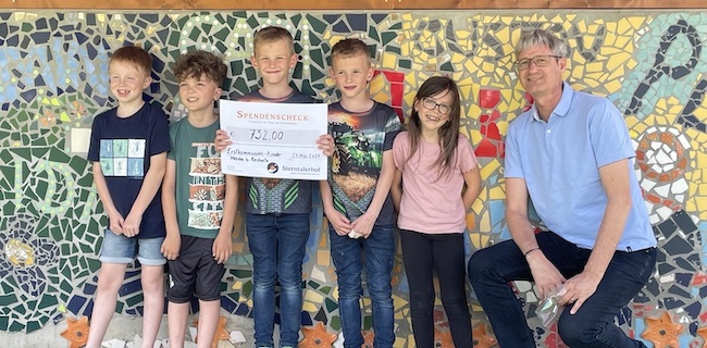 Schließlich überreichten die Kinder die Geldspende, obwohl es nur sechs Erstkommunionkinder gab, kamen 732 Euro zusammen.