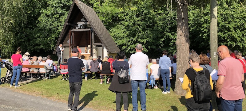 Zahlreiche Gläubige aus Güttenbach und den umliegenden Ortschaften hatten sich zur traditionellen, zweisprachigen Maiandacht bei der Kapelle „Zu den acht Linden“ am Güttenbacher Meierhof versammelt. Viele Pilger kamen zu Fuß, mit dem Fahrrad oder mit dem Auto und feierten gemeinsam zu Ehren Marias diese Andacht. Seinen Abschluss fand der Tag danach bei einer Agape und gemütlichem Beisammensein in freier Natur gleich neben der Kapelle.
