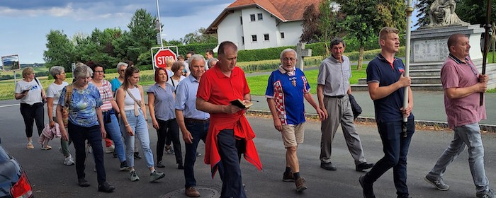 Am Abend pilgerten wir Gläubige der Pfarre Schandorf, unter der Leitung unseres Pfarrers, zur Mariazeller Wandermuttergottes, die dieses Jahr in Dürnbach verweilt. Etwa 30 Menschen machten sich auf den Weg, doppelt so viele fuhren mit dem Auto. Um 18.00 Uhr feierten Pfarrer Branko und Diakon Michael eine bewegende hl. Messe. Dass Martin, Michael, Thomas und Robert die Messe musikalisch umrahmten, war selbstverständlich. Besonders war die Prozession im Pfarrgarten zur Marienstatue.
