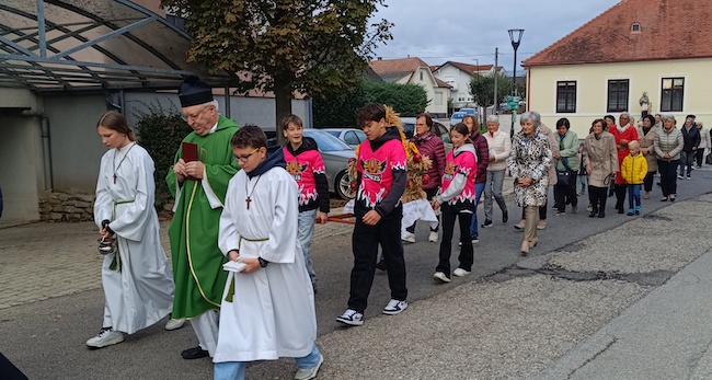 Am 6.10.2024 wurde in der Pfarre Baumgarten das Erntedankfest gefeiert. Die Erntekronen wurde heuer von den Nachwuchsspielern der Pannonia Eagles (Football) in der Prozession vom Pfarrhof zur Kirche getragen.