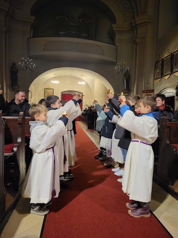 Pfarrer Željko Odobašić feierte mit den Kindern aus Trausdorf die Rorate. Die Kinder kamen gerne zu dieser früh morgendlichen Messfeier.