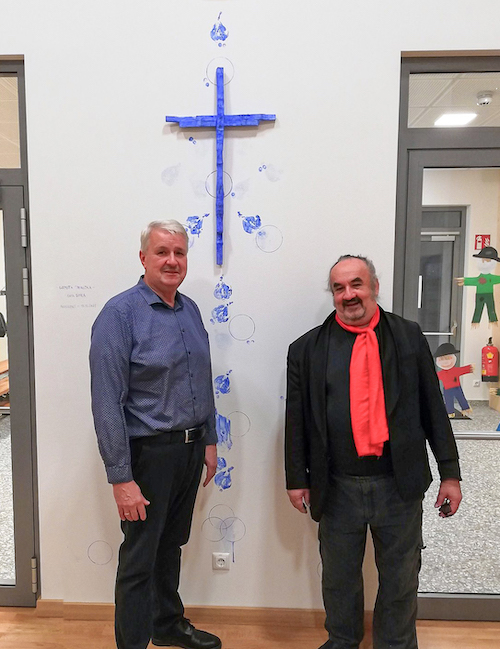 Für die Aula gestaltete er nun ein Kreuz, das viel Symbolik in sich birgt und auch zum Nachdenken anregen soll.