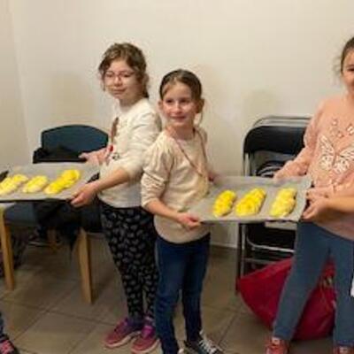 Erstkommunionskinder backen gemeinsam Brot