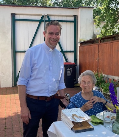 Po pohodu sv. maše je jubilarka svečevala u krugu obitelji. U ime fare čestitao je farski moderator mmag. Štefan L. Jahns i željio jubilarki u novom stoljeću nje života obiljan Božji i Marijin blagoslov, zdravlje, radost, veselje i mir.