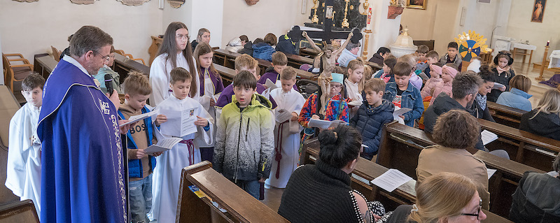 Petak, 15. marca 2024. su u 15.00 ura, u uri Jezuševe smrti, školska dica Vulkaprodrštofa, osebujno ljetošnji prvopričesniki, išli s mjesnim farnikom Štefanom Jahnsom u farsku crikvu i molili križni put. Oni su molili i jačili pri svakoj štaciji i tako sprohodili Jezuša na njegovom teškom putu.