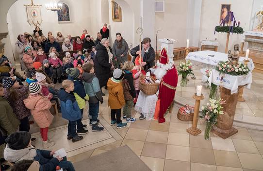 Po kratkom jačenju i skupnoj molitvi s farnikom Štefanom Jahnsom i svojimi odgojiteljicami, su se jako veselili kad je zaistinu sv. Mikula došao u crikvu i je imao sa svako dite mikulu od čokolade.