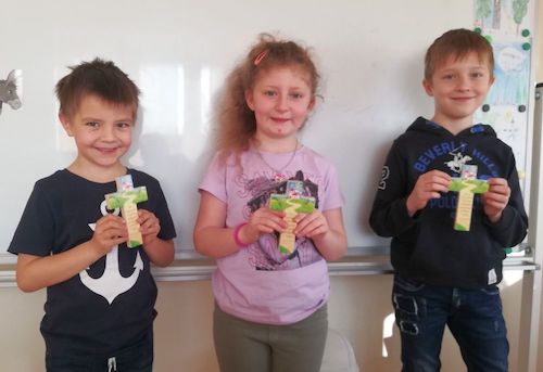 Prekrasni križi pozdravit ćedu dicu pri ulazu u razred i opomenuti na njihovu vezu s Bogom, farom i crikvom, ka je nasuprot škole. Prekrasna gesta, koj su se i veselila dica.