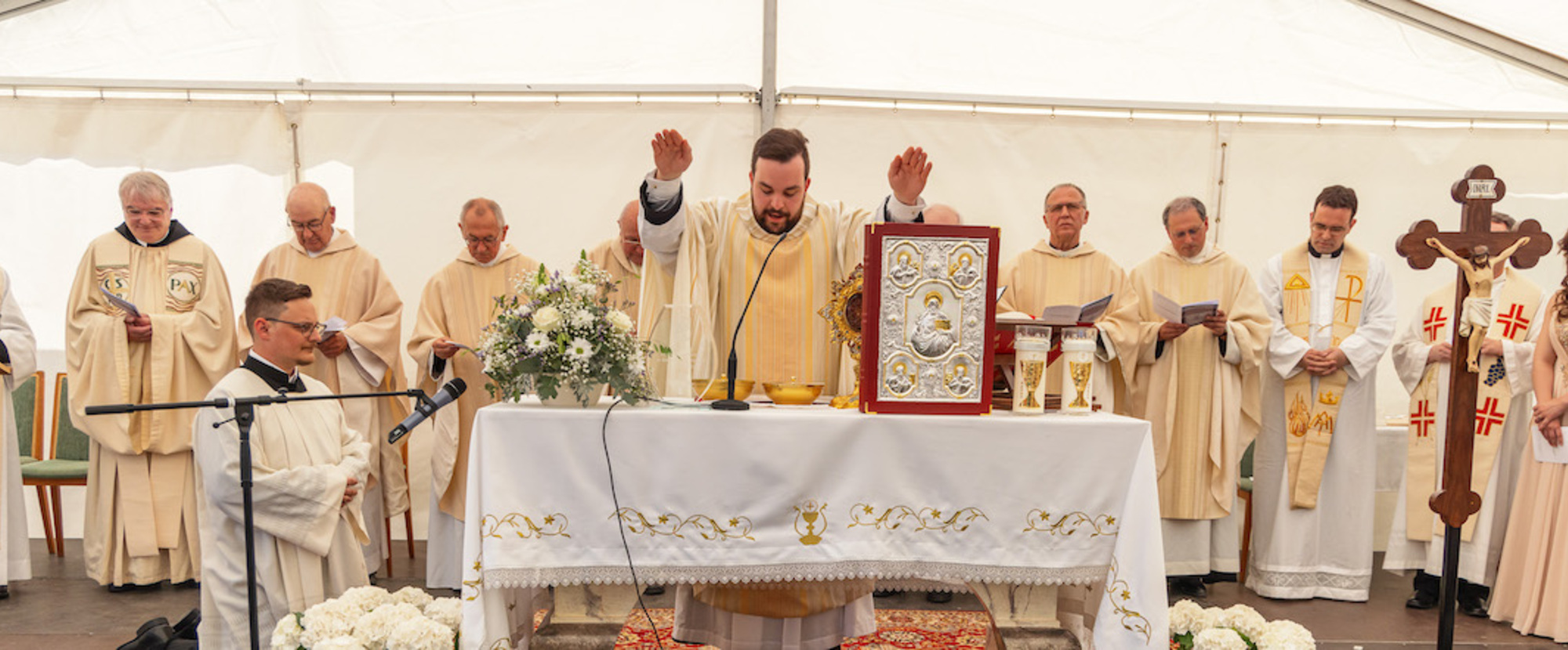 Svetačna mlada maša se je vršila u farskom vrtu pod šatorom. 11 duhovnikov i uz sudjelovanje oko 300 vjernikov je p. Aron prikazao svoju prvu svetačnu mašu, primiciju. Za svetačnoga prodikača si je pozvao biškupskoga vikara p. Karla Schauera, benediktinca iz St. Lambrechta.