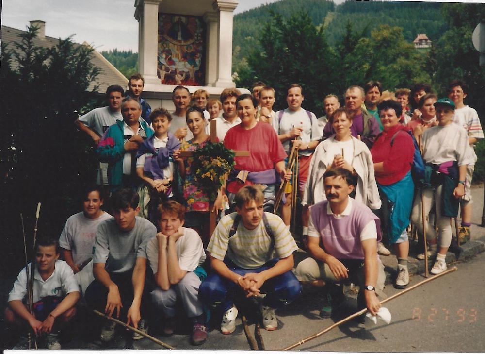 1988. ljeta se je mala grupa mladih ljudi otpravila prvi put piše na put u Celje. Iz Pinkovca je pišački put dost dug, oko 140 kilometrov. Pišačko shodišće zato dura četire do pet dan. Na početku su hodočasniki morali i prenoćevati u sijenu, ar je bilo teško najti kvartir. Dandanas se još rado spomenu ondašnji mladi hodočasniki na to pišačenje. S hodočasniki iz Pinkovca su išli, i koč toč još idu, i vjerniki iz drugih far: na primjer iz Čembe, Bandola, Vincjete, Fratrovoga Sela, Nove Gore i još iz Beča. Neke dobre seoske duše pratu hodočasnike još i do Birkfelda, u Štajerskoj, i je hranu jilom i pilom. Duševna hrana hodočasnikov na putovanju su bile (i su još svenek) molitve, jačke, meditacije, službe riči i koč toč sv. maše. Pred nekoliki ljeti je jedan bravarski majstor iz sela napravio hodočasni križ, koga su postavili neki hodočasniki na Stanglalmu.