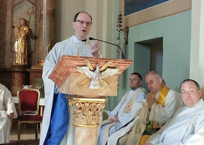 U svojoj prodiki je glavni celebrant p. Štefan Vukić naglasio, da je papa Ivan Pavao II. u jubilarnom ljetu 2000. proglasio drugu nedilju vazmenoga vrimena „Nediljom Božanske milosrdnosti“. Kako je glavni celebrant napomenuo, za ovim svetkom stoji život jedne obične, jednostavne redovnice, sestre Faustine Kowalske, ka je jako skromno živila blizu Krakova, ali imala je jako dibok odnos s Jezušem. Od njega je dobila nalog: „Reci ljudem, da je moja milosrdnost beskrajna!“ I Jezuš ju je prosio, da nacrta sliku, ka izrazi onu neiščrpljivu milosrdnu ljubav. Tako je nastala slika Milosrdnoga Jezuša, ka se danas more najti širom svita.