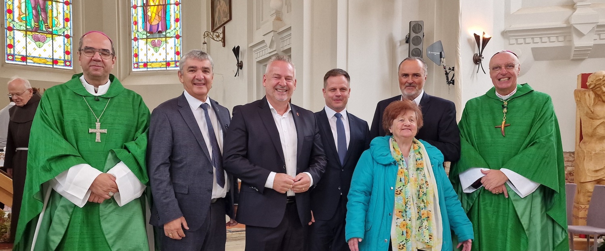 Željezno, 15. septembar 2024. (KAP): Svitu nisu potribne nove granice, nego već otvorenosti i pripravnosti, da se susretnemo s poštovanjem i solidarnošću. Ovo je naglasio željezanski biškup Egidije Živković u svojoj prodiki na nediljnom bogoslužju u crikvi sv. Emerika blizu granice u Felsörönöku u Sambotelskoj biškupiji. Biškup Živković predvodio je svetu mašu skupa sa sambotelskim biškupom Jánosom Székelyjem. Zajedničko bogoslužje triba biti “znak zajedničtva i mira”, istaknuli su biškupi. ORF 2 i ZDF prenosili su svetu mašu uživo.