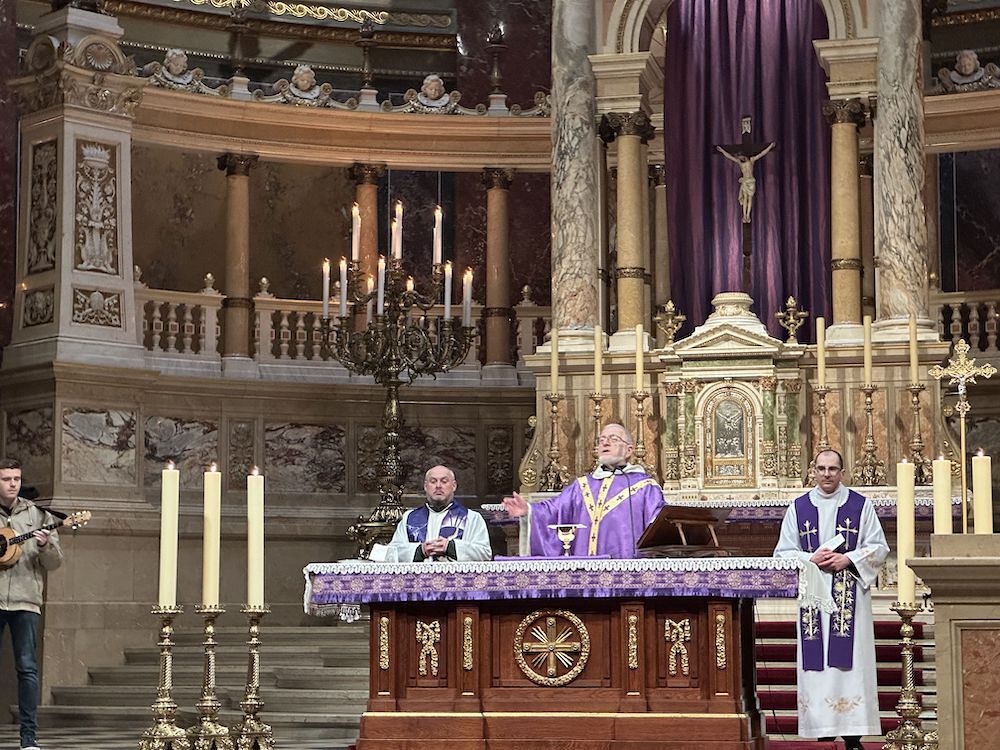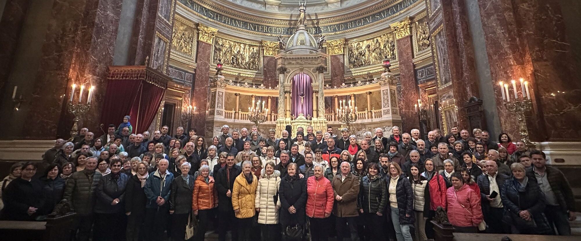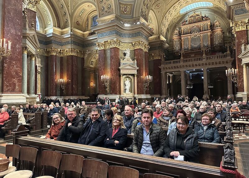 Prva točka ovoga protulićnoga dana je bila bazilika sv. Štefana, ka je najpoznatija i more bit i najimpozantnija bazilika Madjarske, kade su imali Hrvati iz tri zemalj svetu mašu na hrvatskom jeziku, ku je služio vlč. Branko Kornfeind u koncelebraciji nardarskoga farnika vlč. Balázsa Boke i farnika Zdravka Gašparića. Svetu mašu su muzički oblikovali tamburaši iz Čembe. Bila je to zmožna grupa, čuda vjernikov, ke je povezalo hrvatstvo, skupni materinski jezik, vjera i kulturno jerbinstvo. Hrvatske jačke su prelipo glušale u velikoj baziliki glavnoga grada Madjarske. Na svetoj maši je bio nazoči i veleposlanik Republike Hrvatske u Budimpešti, gospodin dr. sc. Mladen Andrlić, ter njegovi suradniki. Gospodin veleposlanik je poslije mašnoga slavlja primio na razgovor predstavnike tri mjesta: Čembe, Narde i Murskoga Središća.