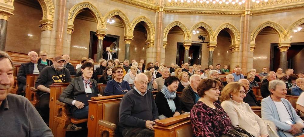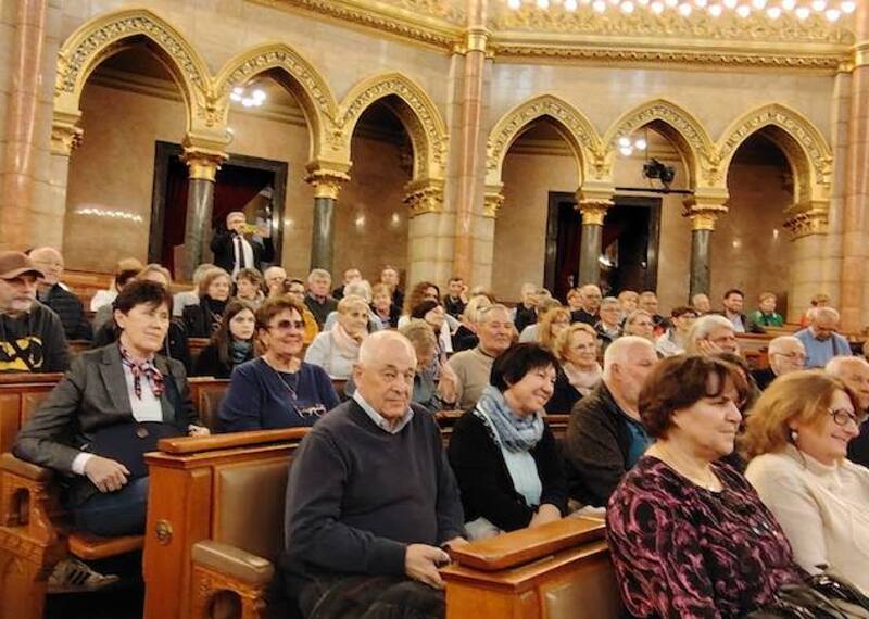 Po mašnom slavlju je sve nazočne čekalo razgledavanje Madjarskoga parlamenta. Zgrada ni neg izvan impozantna nego i iznutra, ča je bilo fascinantno za sve ljude. U Madjarskom parlamentu je grupu primio dopredsjednik Madjarskoga parlamenta ter parlamentarni zastupnik Narde dr. Csaba Hende, čiji smo bili gosti. Po razgledavanju prelipe zgrade je bio skupni objed u Budimu u dobroj atmosferi, kade su ljude razveselili s hrvatskimi jačkami svirači iz Čembe.