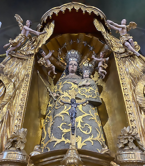 Knez Pavao I. Esterházy (1635. - 1713.) dao je po peldi milosnoga kipa u švicarskom Marija Einsiedelnu načiniti kamenu štatuu i doprimiti u Željezno. Od 1711. se nahadja u milosnoj kapeli farske crikve, ka je posvećena Pohodu Bl. D. Marije.