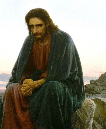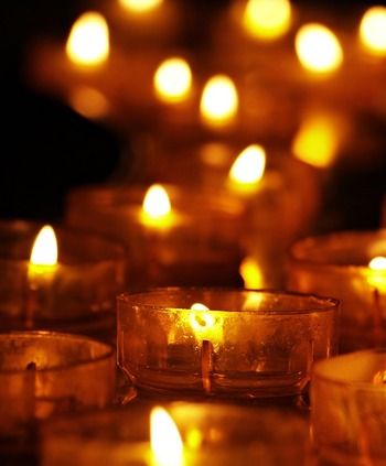 Ein Mann kniet neben Kerzen vor einer Christmette in der Kirche Sankt Remigius in Bonn am 24. Dezember 2020.