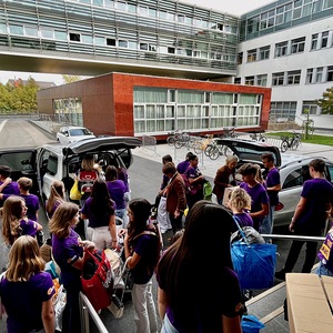 18 Schülerinnen und Schüler der 1CW der HLW Neusiedl am See sammelten unter der Regie von Gruppenleiterin Claudia Peter und Projektbetreuer André Thaler gebrauchte und neuwertige Schultaschen und Schulrücksäcken für Kinder, die sich keine eigenen leisten können.