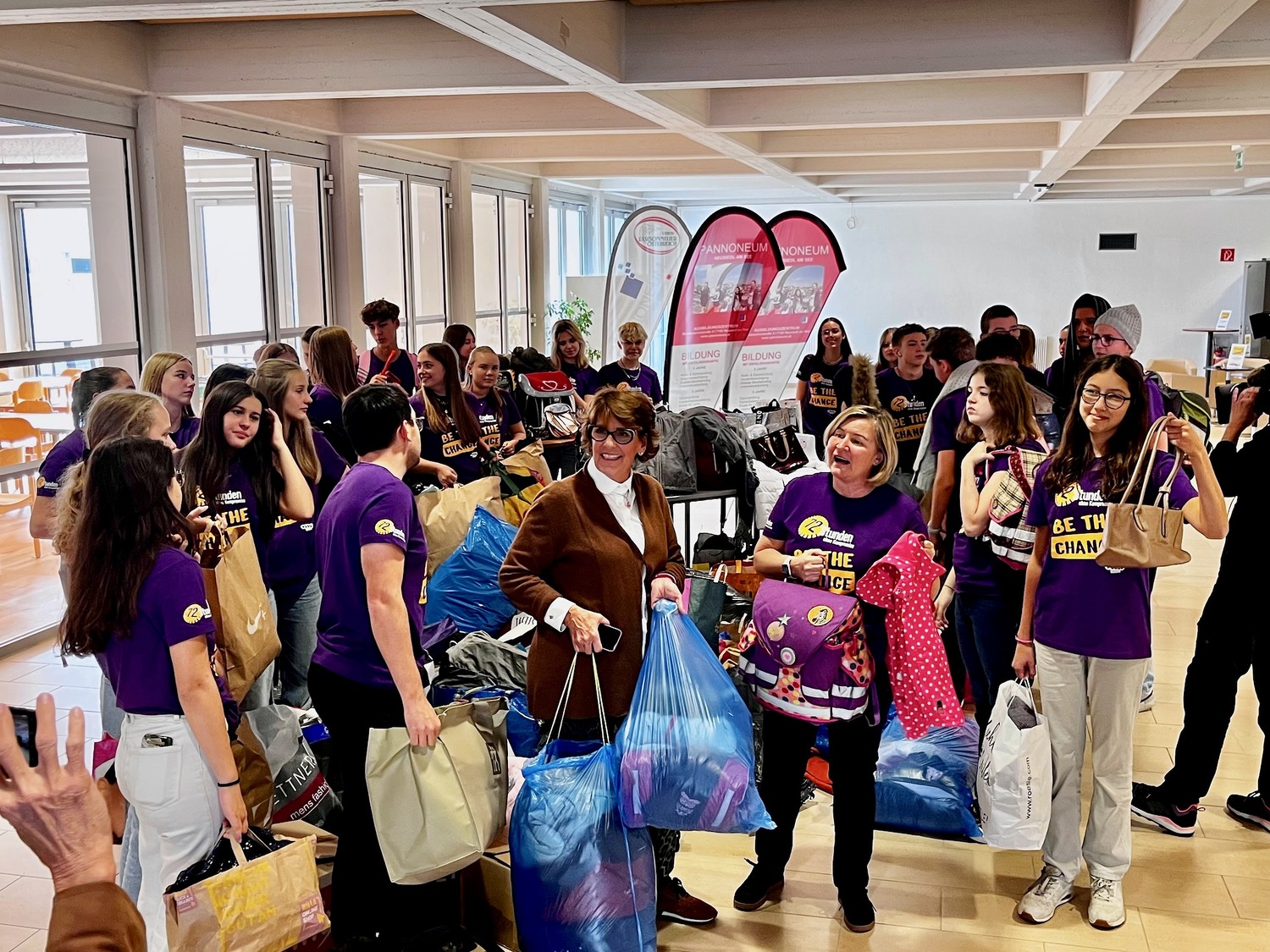 Diese gesammelten Rücksäcke und Taschen werden Vorschulkindern in den Kindergärten in Neusiedl am See angeboten sowie der Pannonischen Tafel in Eisenstadt zur Verfügung gestellt.