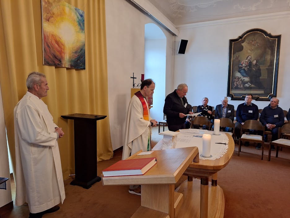 Inhaltlich standen die Besinnungstage unter dem Thema „Sakramente als Wegmarken: Glauben leben und feiern – Impulse für ein synodales Kirchenverständnis“. Der Referent Mag. Franz Weninger – Germanist, Philosoph, Theologe und langjähriger Lehrer – widmete sich diesem zentralen Thema des christlichen Glaubens mit drei fundierten Vorträgen. Dabei beleuchtete er die Sakramente als prägende Wegmarken im Leben eines Christen, zeigte auf, wie sie Ausdruck des gemeinsamen Glaubens sind, und stellte die Frage, welche Reformen im Sinne einer synodalen Kirche notwendig und möglich seien. Die Ausführungen Weningers boten nicht nur theologische Tiefe, sondern auch viel Raum für persönliche Reflexion und Austausch. Die Teilnehmer waren sichtlich begeistert, beteiligten sich rege an Diskussionen und brachten eigene Erfahrungen ein.