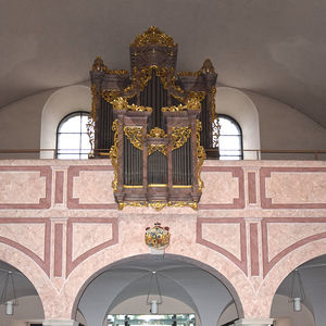 Orgelbauer: Rieger (Gehäuse und historischer Bestand: 1797 Johann Gottfried Malleck, 18/II)