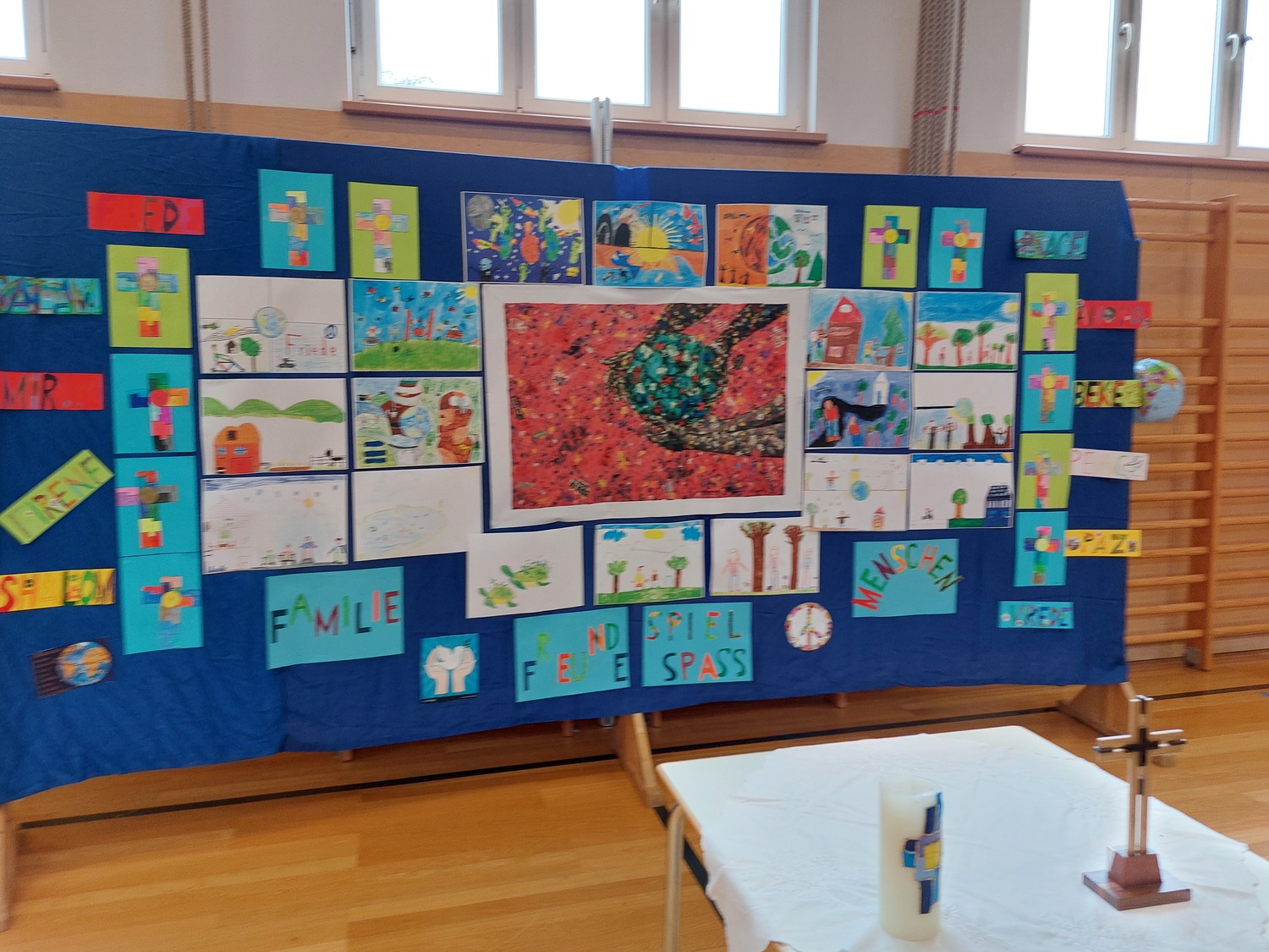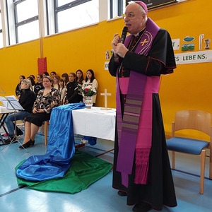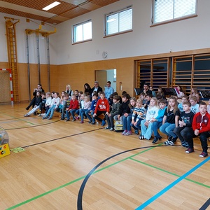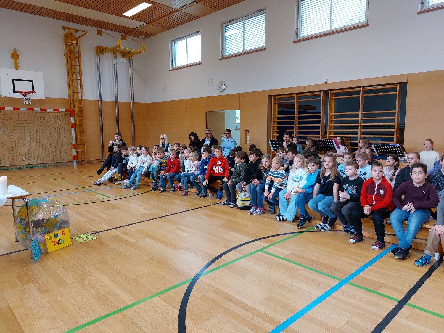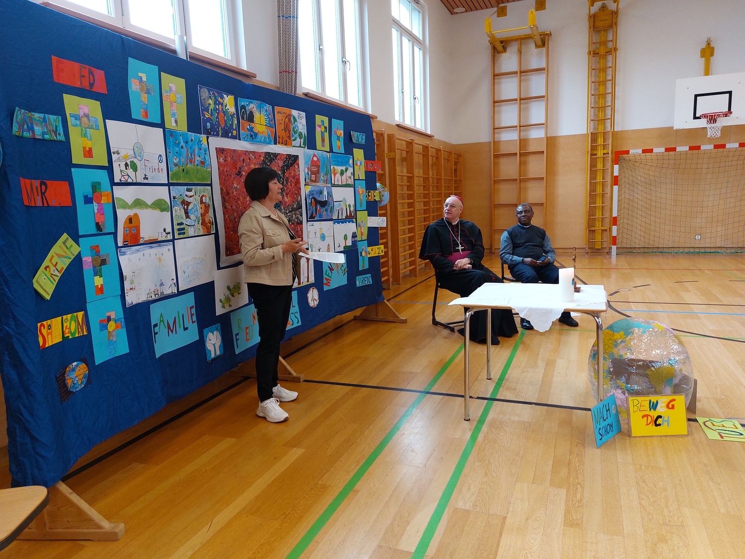 Weiter ging der Vormittag an der Mittelschule Kobersdorf. "Der Herr ist mein Hirte" war hier der Leitsatz der ökumenischen Wort-Gottes-Feier, an der auch Kinder und Lehrpersonen der örtlichen Volksschule und Pfarrmoderator Shinto Varghese Michael teilnahmen. Im folgenden Besuch in der ersten und zweiten Klasse wurde gerappt, ein Kahoot-Quiz gespielt und der Osterfestkreis als Bodenbild gelegt. Es blieben auch ein paar Minuten Zeit, um mit dem Herrn Bischof ungezwungen zu plaudern - sowohl für die Schüler*innen als auch für das Lehrpersonal. Herzlichen Dank an dieser Stelle an Kolllegin Doris Horvath, die evanglische Religionslehrerin Martina Köppel und Direktorin Carina Werba für ihr Engagagement in der Gestaltung des abwechslungsreichen Vormittags.