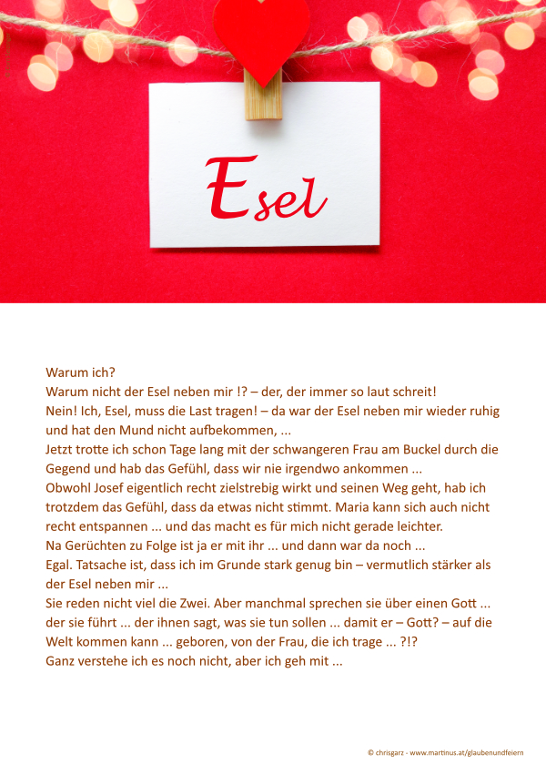 O mein Gott, wen hab ich denn da vor der Tür ... Schwanger, arm und ein Esel ... na bravo!