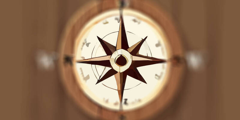 A compass on a wooden ground. Remove the labeling and letters.