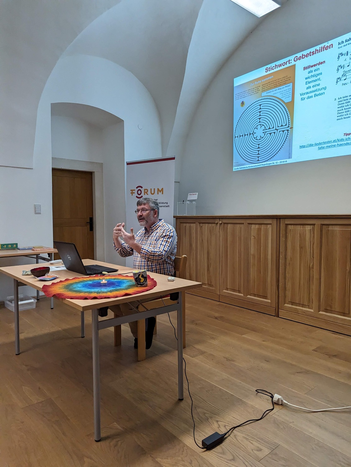 Am vergangenen Donnerstagabend fanden sich rund 30 Interessierte im Pfarrsaal des Klosters Frauenkirchen ein, um am Vortrag "Gott ist mit uns" teilzunehmen. Der Referent des Abends, Nikolaus Faiman, Mitarbeiter des Bereiches Glauben und Feiern der Pastoralen Dienste der Diözese Eisenstadt, sorgte mit seinem Einblick in die Welt der Rituale und Gebete im Alltag der Familien für eine inspirierende Atmosphäre.