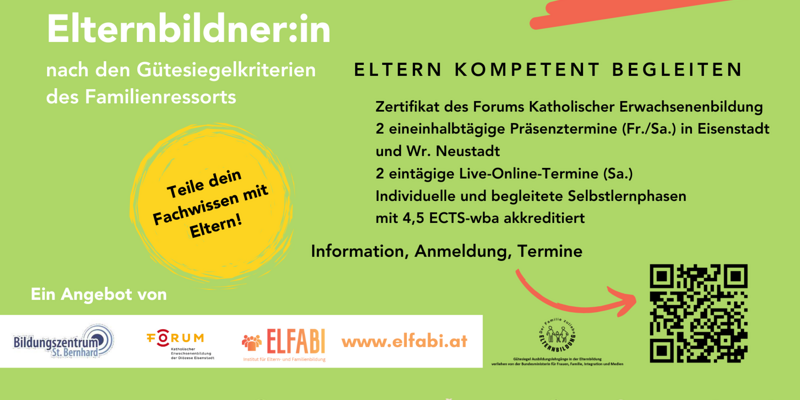 Die Ausbildung zur/zum Elternbildner:in richtet sich an Personen, die in einem einschlägigen Beruf tätig sind und Eltern in ihrer wichtigen Rolle begleiten und stärken wollen?