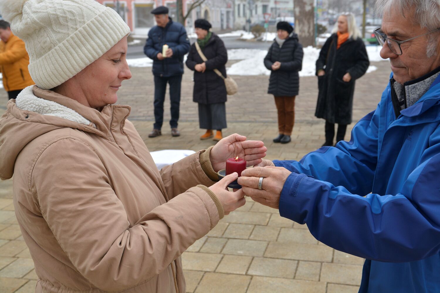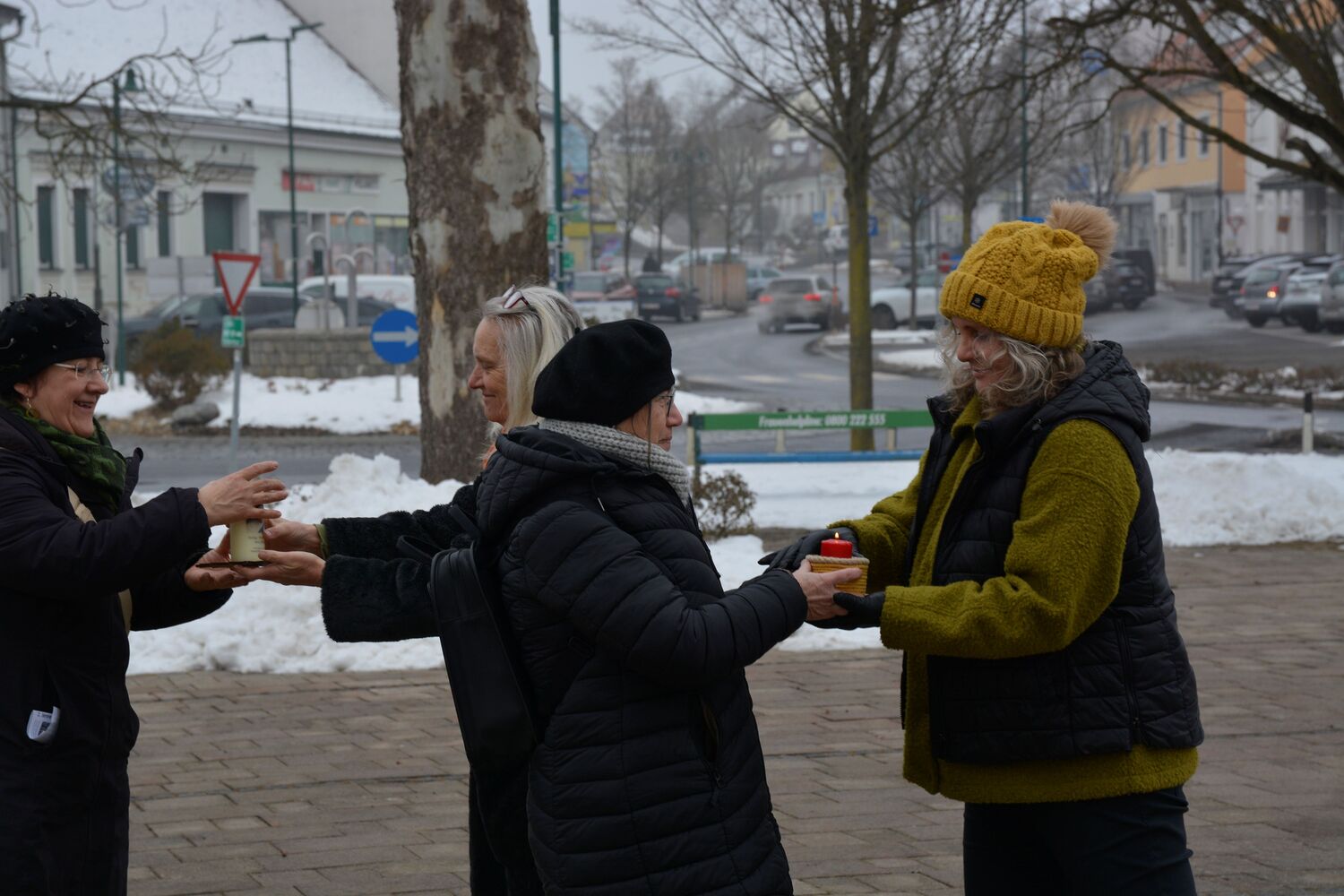 Zum Abschluss ließen sich alle auf ein „Friedensritual“ am Mutter Teresa Platz ein. Eine kleine Schlagwerkgruppe der Musikschule Jennersdorf - dazu Gebet, Impuls und Segen -brachten die Bitte um Frieden hörbar in die Öffentlichkeit, vertieften aber auch den eigenen Herzenswunsch.