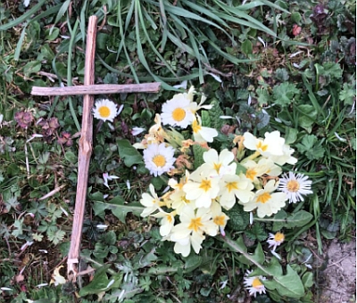 Ich bin für meinen verstorbenen Opa gegangen und habe dieses Kreuz auf dem Weg hinterlassen; möge er in Frieden ruhen.