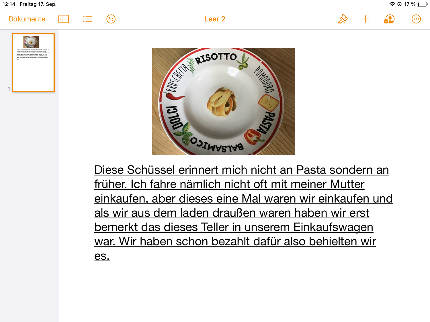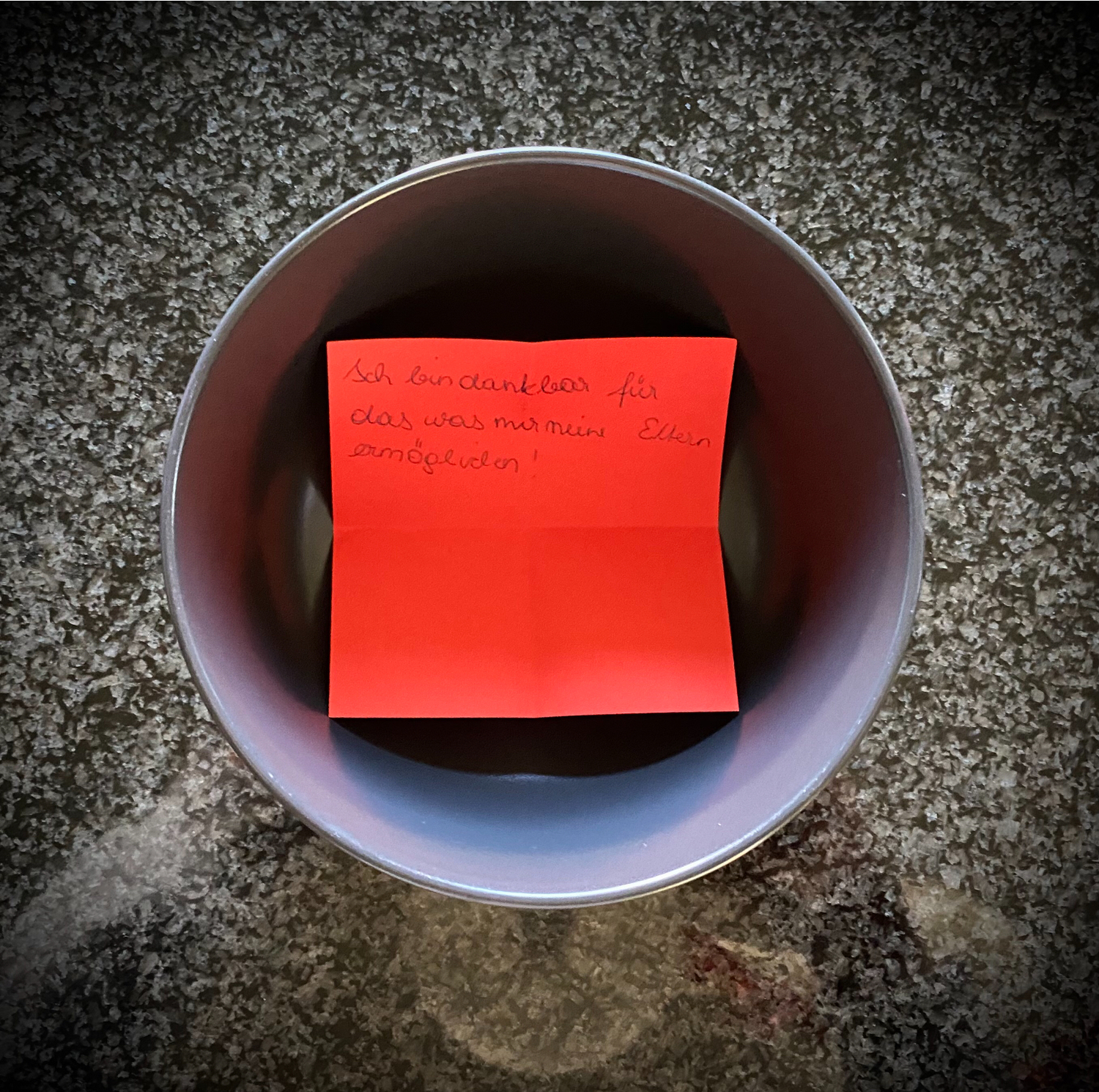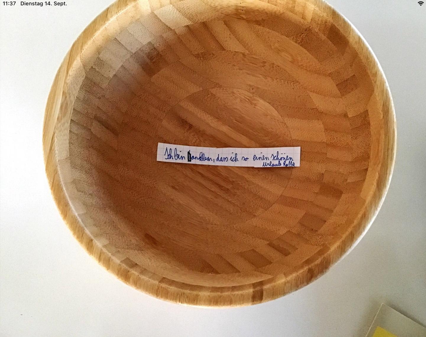 schreib, wenn du magst, einen Satz dazu, der erzählt, warum dir diese Schale wertvoll ist und schicke das Bild an: