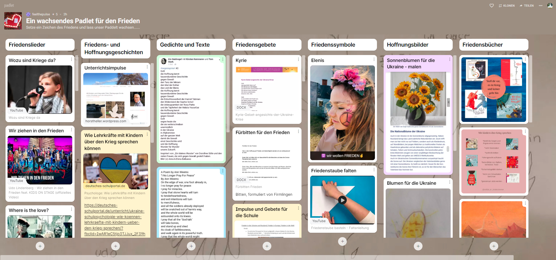 Ein wachsendes Padlet mit Liedern, Texten, Hoffnungsgeschichten, Bildern......