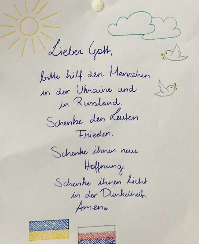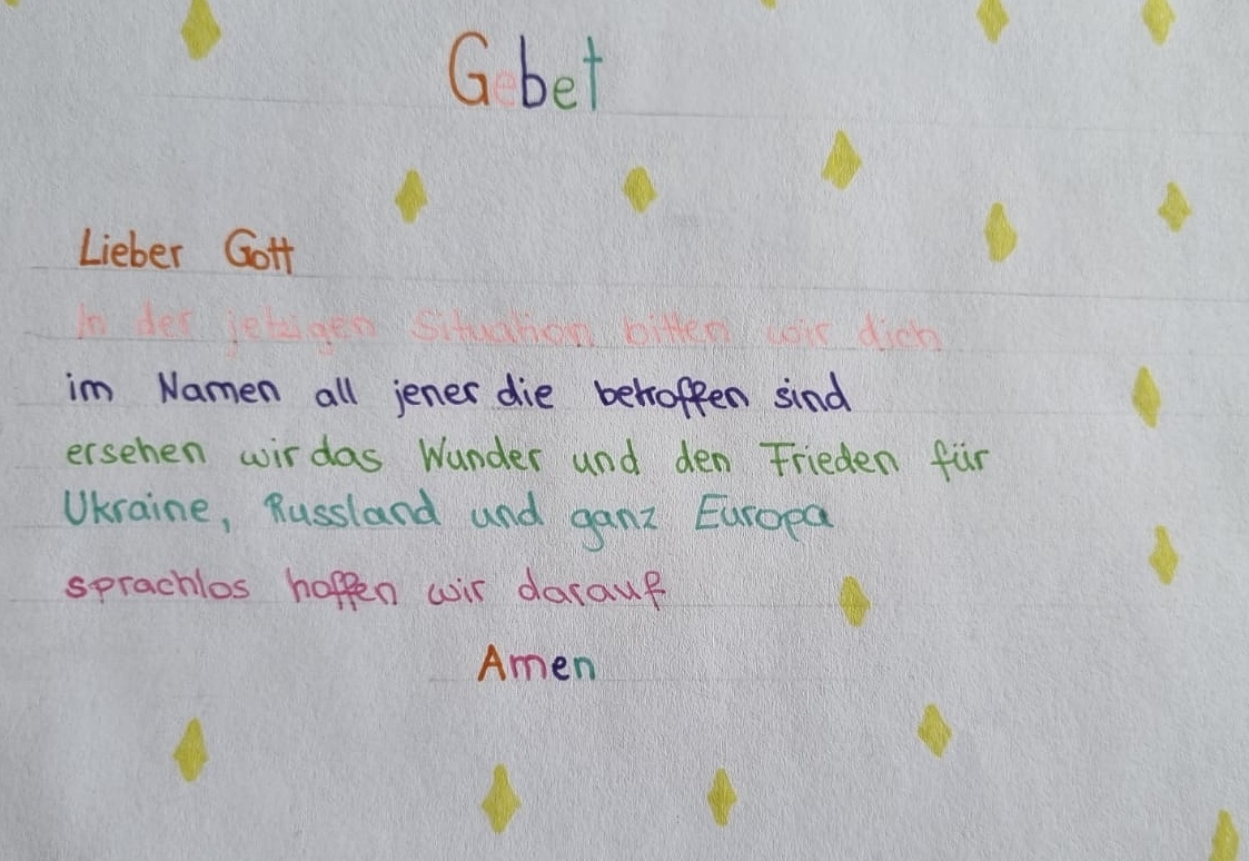 Im gemeinsamen Gebet können wir uns mit den Menschen in der Ukraine und in Russland solidarisiere, den lebendigen Gott um das Geschenk des Friedens bitten und um die Versöhnungsbereitschaft all jener, die in dieser Krisensituation entscheiden.